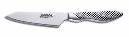 The traditional lines of the Global GS-58 4.25" Oriental Utility Knife is a versatile auxillary blade that you can actually prep with. The size is ideal for a wide variety of small to medium veg and fruit prep, slicing, protein portioning and trimming. Extremely nimble, the Oriental Utility even does well boning out small poultry and prepping fish.The GS 58 is stamped from proprietary Cromova 18 stainless steel and hand honed and finished for precise, professional performance. The seamless handle offers excellent balance and a near weightless feel. Made in Japan and backed by a manufacturer's lifetime warranty.