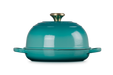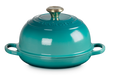 Le Creuset's new Signature Cast Iron Bread Oven can be used to achieve artisanal quality breads with deeply browned, chewy exteriors and an open, airy crumb. This specialized bread cloche has a bell-shaped lid that traps steam and heat for improved oven spring and even browning.