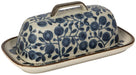 The Element Butter Dish features delicate florals in soft blue over a natural, speckled field. The stylish stoneware piece is dishwasher and microwave safe. The wide rim, full coverage rectangular dome lid, and elegant top handle contribute to the aesthetic. This durable glazed stoneware dish helps regulate temperature, keeps odors at bay in the fridge, and is easy to keep clean in the dishwasher. Measures 8" l x 4.5" w x 3.5" h.