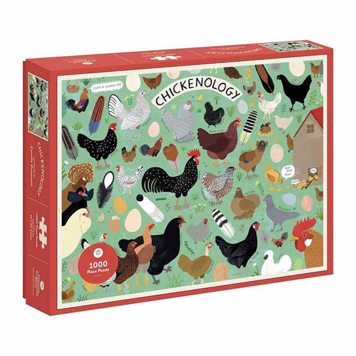 View full detailsThe whimsical artwork of the Chickenology 1000-Piece Jigsaw Puzzle features over 40 distinctive and colorful chicken types in a lush, green grass s...