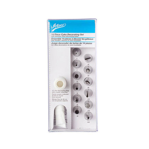 View full detailsLet the cake decorating commence with the Ateco 14 Piece Cake Decorating Kit. This 14 pc. set comes in a clear plastic storage box and contains a 1...