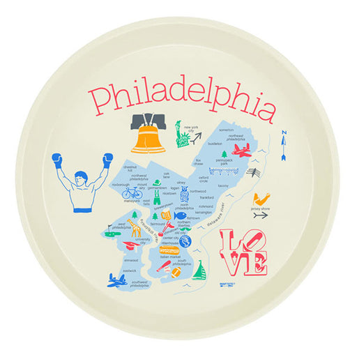 View full detailsThe Philadelphia Melamine Platter features the City of Brotherly Love and its environs, from the far Northeast to deep South Philly. This 16” melam...