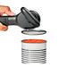 - Sharp stainless steel cutting wheel doesn't touch can contents