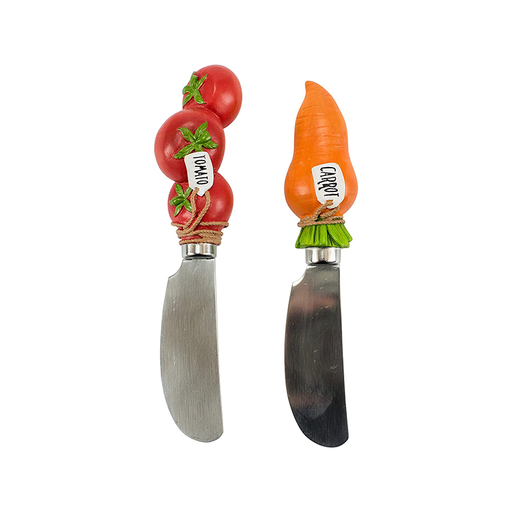 Enjoy these charming hand painted spreaders all year round! The Set of 2 Carrot and Tomato Cheese Spreaders feature durable resin handles, hand pai...