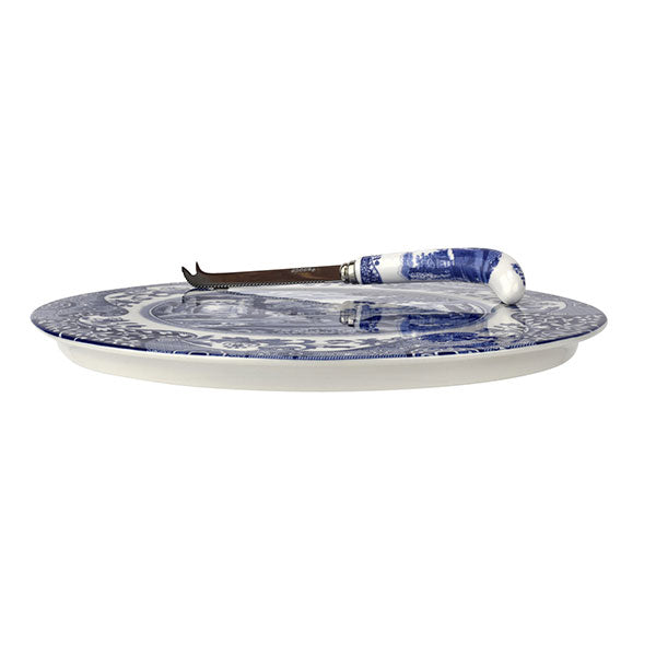 Spode Blue Italian 2 Piece Cheese Plate With Knife