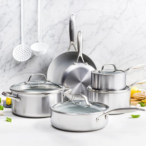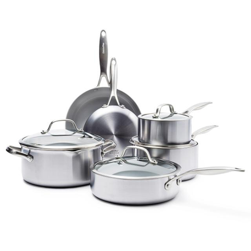 The GreenPan Levels Stackable Hard Anodized 11 Piece Cookware Set with Bonus Pan Protectors is so much more than just stackable cookware. The Green...
