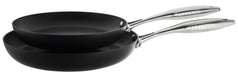 The Scanpan Professional 9.5" & 11" Nonstick Fry Pan Set offers a smart buy on some of the best performing, eco-friendly nonstick cookware available. The Pro Series pairs Scanpan's exceptional hand-cast, 100% recycled aluminum cookware with riveted and cast stainless steel handles that are designed for stove top-to-oven use, and oven safe to 500°F. And as always, Scanpan's patented PFOA- and PFOS-free ceramic titanium nonstick coating is a durable nonstick solution that makes cooking and cleanup a breeze. This 2-piece set offers great versatility for the things you cook the most. Ideal for eggs, omelets, grilled sandwiches, pasta dishes, and seared fish or meats. And because the innovative ceramic titanium coating can be used to brown and deglaze, both pans are also excellent for sautes and general frying. Scanpan's environmentally friendly nonstick coating is durable and one of the best performing easy-release surfaces available. The Scanpan Professional 9.5" & 11" Nonstick Fry Pan Set is handcrafted in Denmark and backed by the manufacturer's limited lifetime warranty.