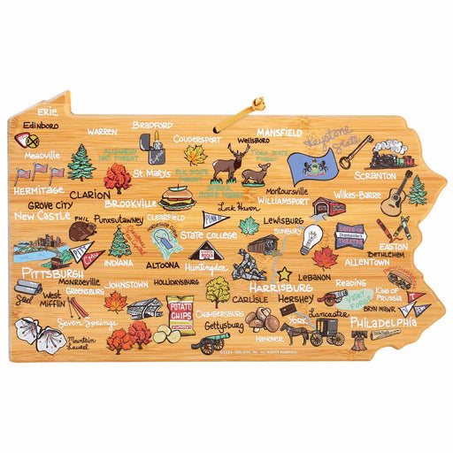 View full detailsMake a STATE-meant with the Totally Bamboo A Slice of Life Pennsylvania Board. This light-weight 11" x 8.75" board features a laser-etched graphic ...