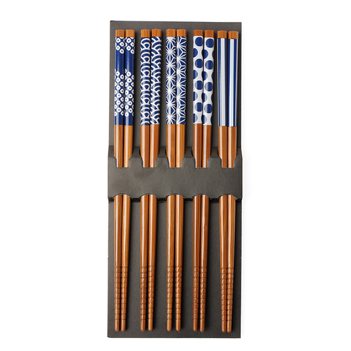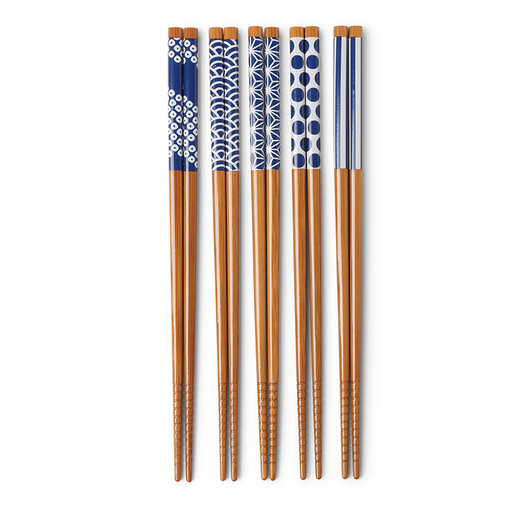 View full detailsThe Miya Set of 5 Bamboo Chopsticks in Waka Blue & White is the perfect addition to any sushi feast, whether you make your own or bring in take...