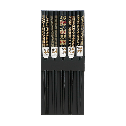 View full detailsThis Miya Set of 5 Assorted Black and Gold Chopsticks will be the perfect addition to your sushi feast! Each black chopstick is decorated with a as...