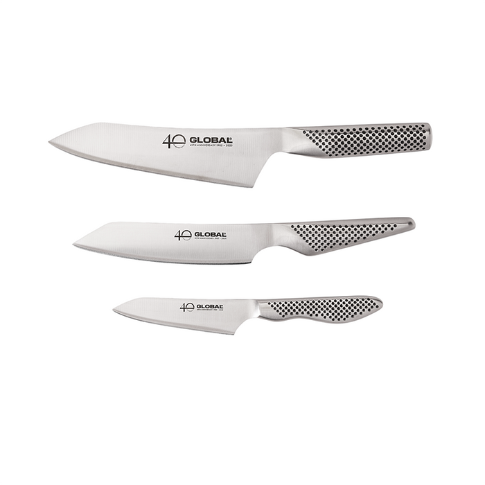 Four decades of timeless design, precision craftsmanship, and cutting-edge innovation culminate in the Global 40th Anniversary 3 Piece Knife Set.