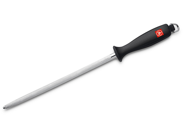 The Wusthof 10" Sharpening Steel is an excellent tool that should last a lifetime. The rod is slightly thicker than on many models and features fine, precisely machined grooves that run parallel for the length of the steel. They help push the very edge of your blade upright in just a few easy strokes. The Steel also has a magnetized tip that will catch the minute, powdery steel particles that can come loose from the edge. The wide, strong handle has a guard to protect your hand and a hanging loop. Simply wipe with a damp cloth periodically and dry well.
