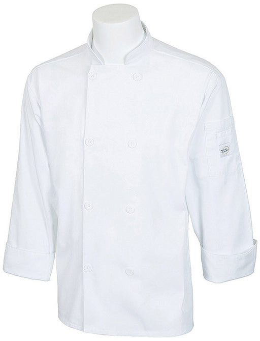 View full detailsThe Mercer Unisex Chef's Jacket in White stays comfy no matter how hot the kitchen gets, because it's made from a soft, breathable poly-cotton twil...