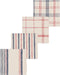 In soft hues of blue, red, and white, these table linens bring a taste of ' joie de vivre' to any table. The Danica Heirloom Set of 4 Bastien Vintage French Napkins set the stage for a tasteful meal. The 100% organic cotton slub fabric is woven with a gently-textured and assorted stripe patterns in vintage blue and red over a natural background. Each napkin measure 20" l x 20" w and are fully seamed around the edges. Machine washable cold, hang or lay flat to dry. Includes 4 assorted pattern napkins.