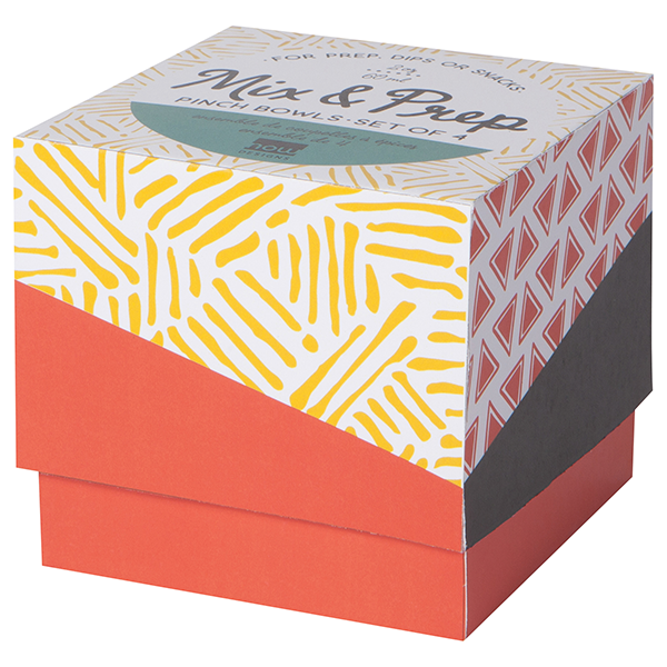 The Now Designs Set of 4 Mix & Prep Bowls are both functional and fun! The porcelain stamped bowls are just the right size to hold spices and other ingredients as you prep your recipes. The attractive patterns will be sure to find a spot at your table, too for dips or sauces. Don't just relegate these to the kitchen or dining room as they are the perfect size for holding small jewelry or keys. Dishwasher and microwave safe. Each dish holds 4 oz. and measures 3.5" w x 3.5"l 1.5" h.