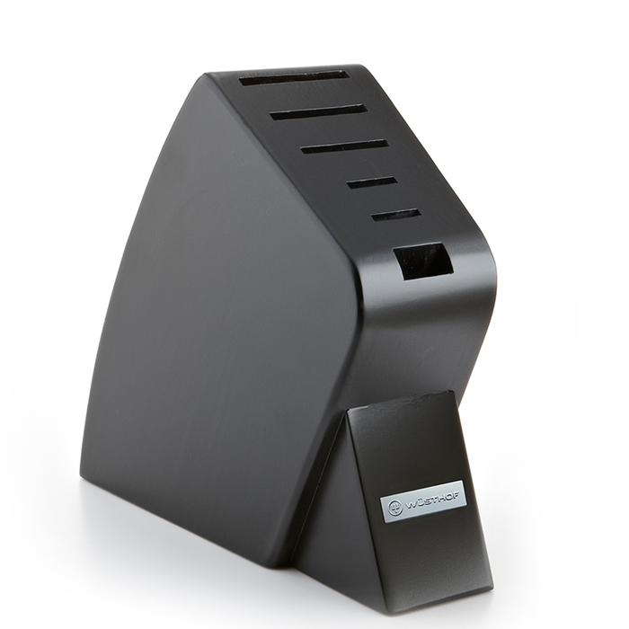 The Wusthof Gourmet 6 Piece Studio Block Set is the perfect choice for first apartments, or anytime counter space is limited. This smart, compact selection includes the 8" Chef's Knife, 8" Bread Knife, 2.75" Paring Knife, 5" Spreader, Kitchen Shears, and a slim-design 6-slot Studio Block in a handsome black finish. The cutlery is from Wusthof's previous design series, with red logo stickers on the handle and printed series logos on the blades.