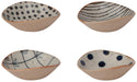 Capture the essence of water, air, earth, and fire with this collection that soothes, revives, grounds and ignites - awakening our natural connection to the elements. This elegant set nods to global design, with a sweeping rim and glazed, natural interiors with soft, blue hued assorted patterns. Each has a 2 oz capacity that's ideal for dipping sauces. The stoneware set is dishwasher and microwave safe. Each measures 3.5" x 3.5" x1".