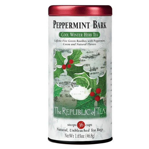 View full detailsFor a cold Winter's night treat, try the Republic of Tea's Peppermint Bark Cool Winter Herb Tea. This Caffeine free herbal tea is made with Rainfor...