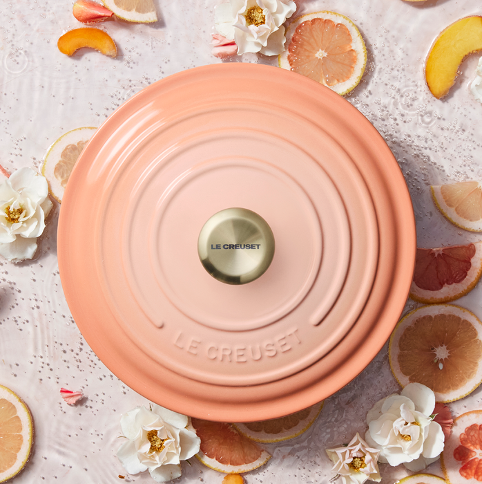 The 6.75 Qt. Signature Round Wide Oven is backed by a manufacturer's limited lifetime warranty and is dishwasher safe. Made in France.