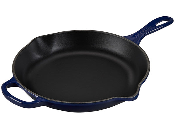 Your favorite skillet just got better! Le Creuset has refreshed its classic skillet line, adding several new Signature touches to its original workhorse design. The new 10.25" Signature Skillet features the same durable enameled finish and matte black interior enamel as the original, but the pan now features the Signature loop handle to make it easier to lift the skillet and move it to your stove top, oven or table.
