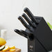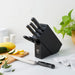 The Henckels International Solution 6Pc Studio Block Set isn't just affordable. It's invaluable. For roughly the cost of dinner out, you get a core set of 4 versatile essentials that you can happily cook with for years to come. Whether you're just starting out, downsizing or ready to trade up to better cutlery - this deal is too good to pass up! The Solution series is quality, single-piece, precision-stamped blades made from Henckel's brilliant high-carbon stainless steel alloy, and they are lightweight, strong, and durable. An ergonomic, traditional triple-rivet handle delivers maximum maneuverability and fatigue-free cutting. Honed for long-lasting sharpness, the fine-edge blades boast precision cutting, while the serrated pieces offer long-wearing bite for tougher ingredients. The smart core selection includes the 8” Chef’s Knife, 8” Carving Knife, 5” Serrated Utility Knife, 4” Paring Knife, and Henckels' multi-function Kitchen Shears. The simple black wood studio block keeps the counter free and your cutlery close at hand, so you can get cooking!