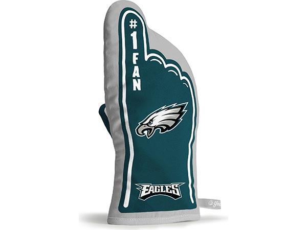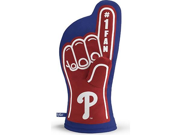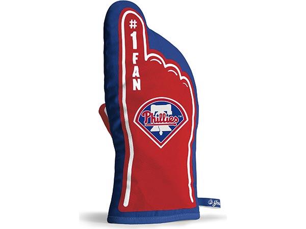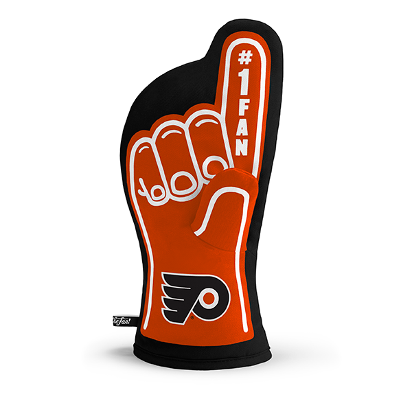 You The Fan's #1 Oven Mitt is a premium, heat-resistant, 100% quilted cotton mitt that is ideal for grilling or in the kitchen. The exclusive #1 Fan design takes the iconic image of the foam finger and your favorite Philly Team logos and creates a one-of-a-kind oven mitt that can handle the heat in style. Officially licensed, and ready to cook and cheer!
