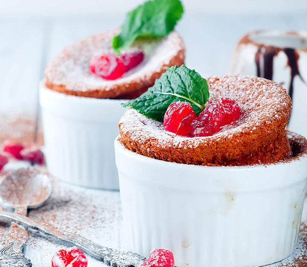 Prepare impressive souffles with these 10 oz porcelain ramekins. This versatile dish also doubles as the perfect baker for deep-fruit cobblers and savory casseroles. Makes a great serving dish too! Ramekins are oven, microwave, freezer and dishwasher safe. Measure 4".