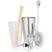 • Includes wood muddler, bottle pourer, strainer, double jigger, bar spoon,