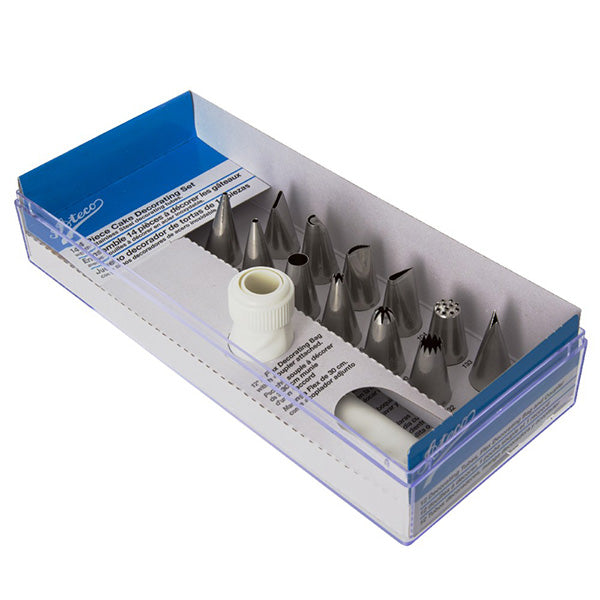 Features of the Ateco 14 Piece Cake Decorating Kit include: