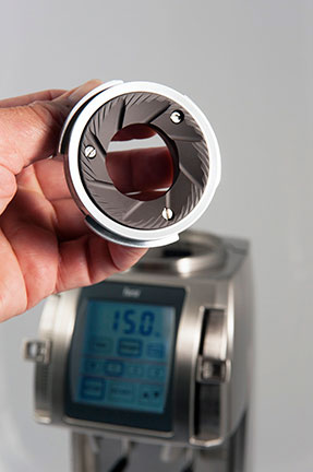 The Forté AP lets you switch between weight-based and time-based dosing with a touch of the screen. There is also a manual option, similar to a "pulse" button that grinds with a touch. And unlike the BG model, the AP includes both a 6.3 oz static-dissipating grinds container, as well as a beautifully made porta-holder insert, so you can dose directly into your espresso machine's portafilter. True dosing by weight is only possible when grinding into the container, but if you want to dose by weight directly into a portafilter, Baratza has engineered a smart feature that will convert weight input into a time-based dose that is accurate to within a half gram! Once you have honed in on your favorite grind volumes, simply enter them into the three programmable short-cut buttons. Together, the superbly-built grind adjustment system and the brilliant user interface lead to exceptional consistency, reliable repeatability and ease of use.