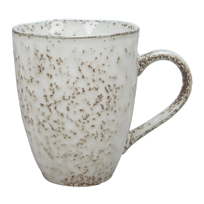 The big 18 oz Rustico Mug from BIA Cordon Bleu is carefully designed to look like a simple, imperfect, and well-worn cup, with rough stoneware peeking through the natural white enamel. Rustic, but elegant. A big teardrop handle offers a solid grip, or you can comfortably wrap your hands around the gently tapered sides of the mug. This is a generously sized cup that you will want to fill with a hot beverage and warm your hands with. Fantastic for coffee, aromatic teas, and rich hot chocolate. The 18 oz Rustico Mug is durably glazed and dishwasher safe for everyday use.