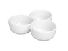 This divided server will be a huge help every time you entertain guests. The BIA Cordon Bleu 3 Section Joined Bowls have a simple bistro design that fits any occasion, and it's hard to beat the utility and versatility of a divided bowl for condiments, candies, nuts, sauces and more. BIA Cordon Bleu Bistro pieces are made from fine porcelain; this durable tableware won't chip, crack, stain, or transfer flavors. The BIA Cordon Bleu 9.25" Porcelain Covered Casserole is microwave and dishwasher safe. Each bowl has a 10 oz capacity and the whole piece measures 8" l x 8" w x 2.25" h.