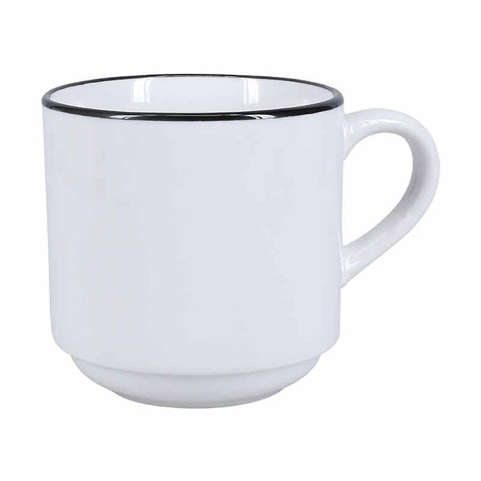 BIA Cordon Bleu 13 oz Stackable White Mug with Black Rim