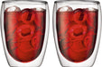 Extremely optimal for hot or cold beverages, the Bodum Set of 2 Pavina 12 Oz. Glasses features a durable, double-walled design that is lightweight and insulated. The double-walled assembly keeps coffee warm until the last sip and maintains cold drinks for longer too; the borosilicate material won't sweat or condensate either. These glasses always stay cool to the touch when handling or drinking from. Dishwasher safe.