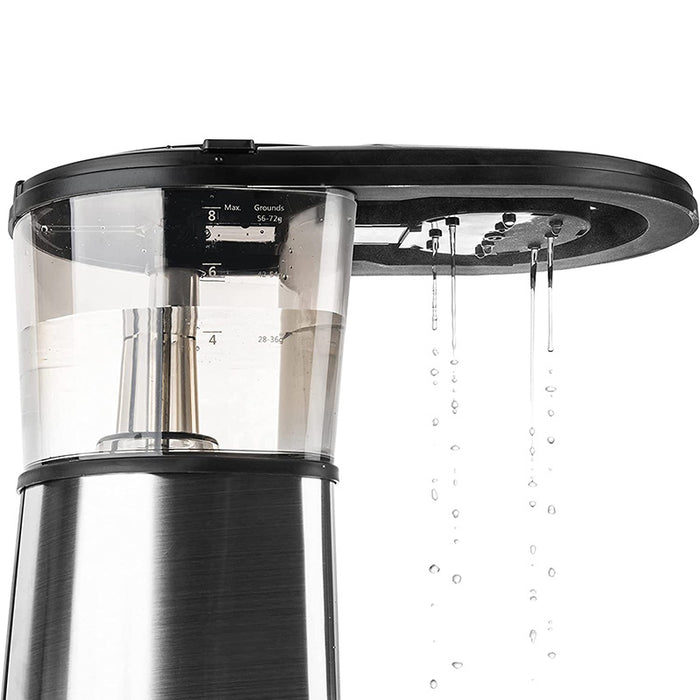 - Optional pre-infusion mode wets freshly roasted ground coffee to allow degassing before brewing