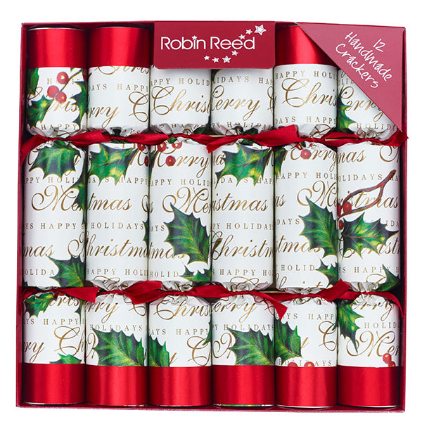 This Robin Reed Set of 12 Bows & Berries Christmas Crackers features 12 beautifully decorated hand made crackers. Each cracker is filled with little toys and games and are a favorite at holiday gatherings. Each cracker measures 10".