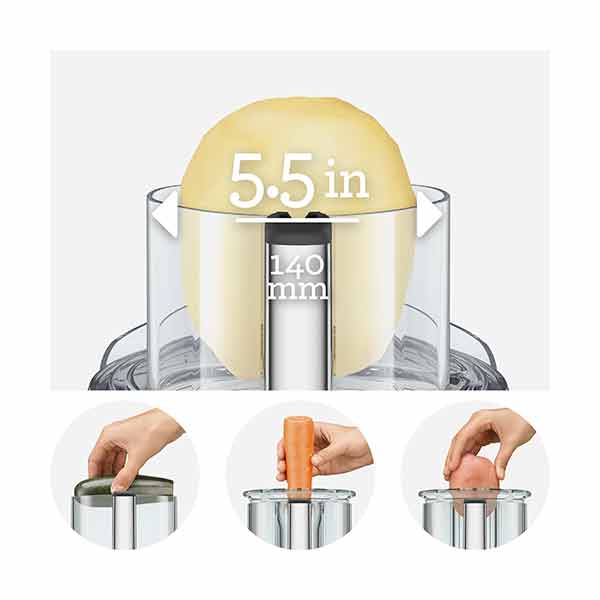 - Extra large 5.5" feed chute reduces the need for pre-prep