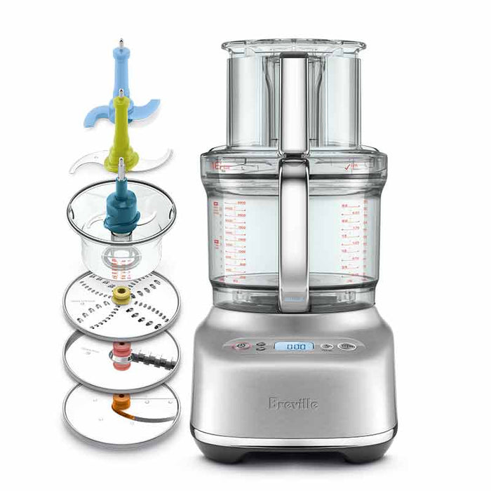 The heavy-duty induction motor is an updated direct-drive design with a high torque 1450W motor that will easily handle the toughest jobs in the kitchen. This processor is ideal for all types of bread dough, pastries, and crusts. Breville backs the Paradice 16 Food Processor with a full 2-year product warranty, plus a 30-year Motor warranty! Measures 11.3" l x 9.2” w x 17.7" h.