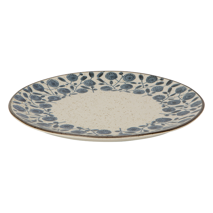 With a natural background and a soft, organic blue floral pattern, the Danica Heirloom Calendula Element 10" Plate is a beautiful choice for everyday dining. The durable glazed stoneware plates feature hand-painted rims, softly speckled design, and unglazed bases to lend an artisanal quality and craft feel, yet the strong glazed dinnerware is dishwasher safe and microwave safe.