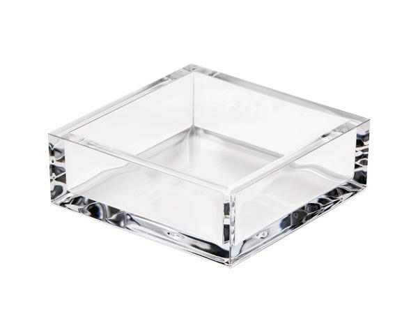 The Caspari Acrylic Cocktail Napkin Holder features modern understated style that complements table settings of any season. Constructed from durable clear acrylic, this napkin holder fits Caspari cocktail napkins no matter the design or color. They make a tidy display on counter and tabletops, and in dining rooms. The Caspari Acrylic Cocktail Napkin Holder can be used indoors or out and measures 6" square x 2.5"h.