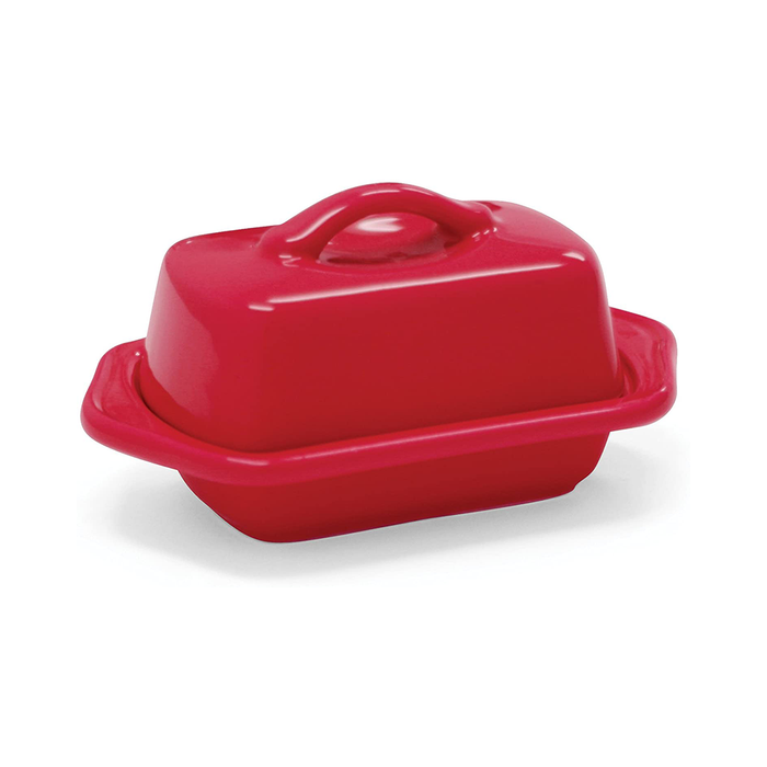 The Chantal Mini Butter Dish is simply perfect for adding butter and a touch of vintage color to a tight counter or small breakfast nook. The classic design is crafted from Chantal's durable, high-quality glazed stoneware with a non-porous and non-reactive glaze and it's just the right size for small get-togethers and passing around the table. The dish can easily go from freezer or refrigerator, to microwave and table and is dishwasher safe. All Chantal ceramics are lead and cadmium safe and meet FDA and CA Prop 65 requirements. The Chantal Mini Butter Dish holds about half a standard stick of butter and measures approximately 5" l x 3.25" w x 2.75" h.