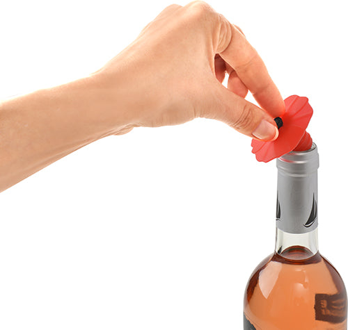 Seal your bottles and brighten your counters with the Charles Viancin Poppy Bottle Stopper. These lovely red stoppers feature a multiple flange design that creates and airtight and watertight seal over bottles to help protect wine, spirits, vinegars and oils from spills and oxidation. The Poppy Bottle Stopper is made from food grade silicone that is free of any BPAs. Dishwasher safe and measures 2.25" lx 2.25" w x 1.5" h.
