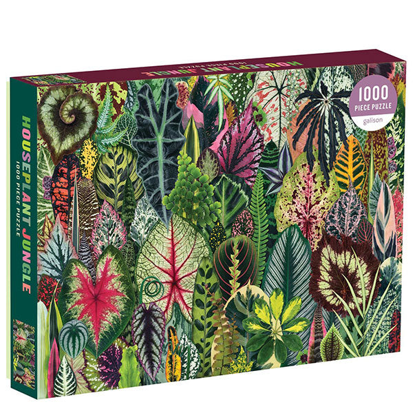 Celebrate the beauty and diversity of richly patterned, uniquely shaped, and surprisingly colorful houseplant leaves in this Houseplant Jungle 1000 Piece Puzzle. Test yours and your friends' knowledge of horticulture as you enjoy spending time together assembling this puzzle with a closeup view of 51 plant leaves. A perfect gift for any green thumb. 20" w x 27" l assembled.
