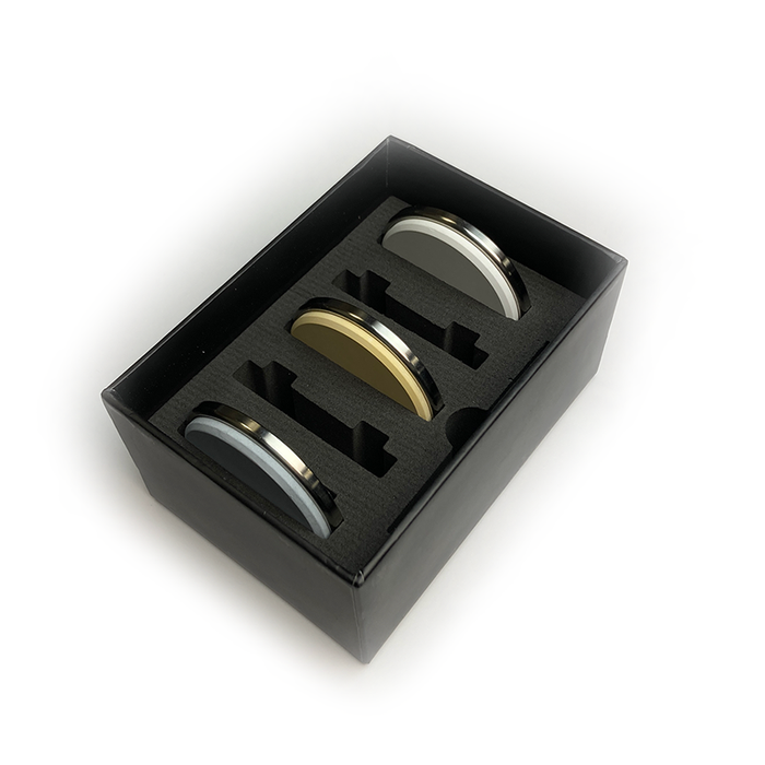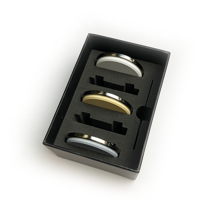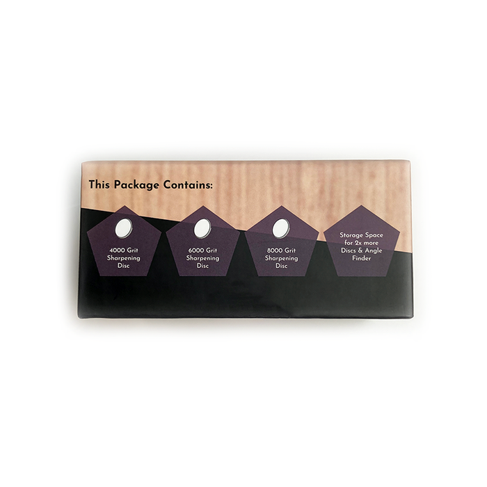 The CINQ Ceramic Expansion Pack is designed to work seamlessly with your CINQ Rolling Knife Sharpener, and will give your quality knives polished results, similar to a specialty whetstone finish. This set of 3 premium ceramic finishing discs enables anyone to achieve a highly refined edge at home with the CINQ Rolling sharpener. Crafted from high-grade corundum ceramics, these sharpening 4000, 6000, and 8000-grit discs will give your blades an extremely fine and polished edge. The ceramic surfaces are extremely long-wearing and are designed with a magnetic fit that couples to the rolling sharpener securely and can be changed easily. The durable storage box has a dense closed foam insert that holds the 3 included discs, with space for 2 more discs, and the steel angle finder included with your Rolling Knife Sharpener.