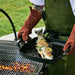 It’s perfectly sized to fit on most grills with enough room to grill alongside, and has a generous surface area and angled sides, ideal for stirring and flipping. Raised loop handles make it easy to maneuver on the grates, yet with a low-profile design that allows grill hoods to close.