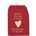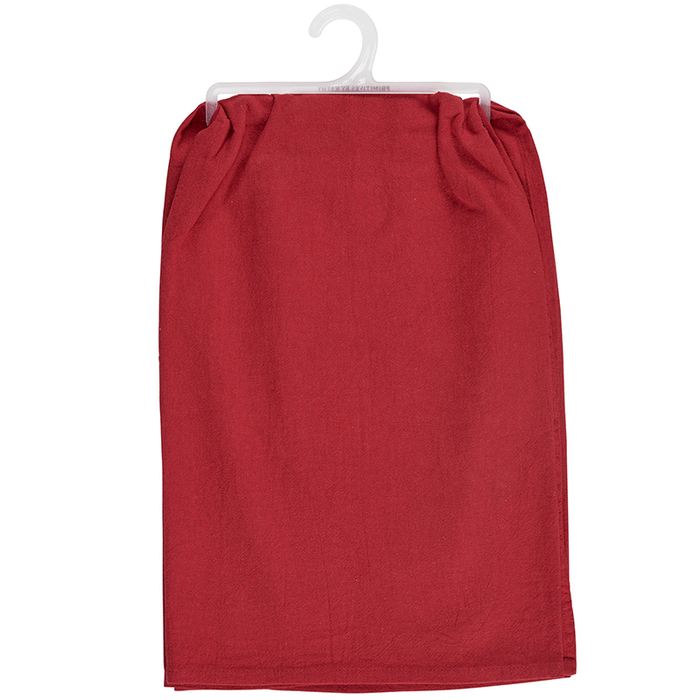 This red cotton tea towel is one of our favorites from the Valentine's collection that we just happen to think is appropriate all year around. The Primitives by Kathy Love of My Life Tea Towel is cut from soft and absorbent flour sack cloth, which quickly laps up spills and dries dishes, lint-free. It reads, "You are the love of my life... and the pain in my ass". Machine washable. Measures 28" x 28".