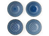 The Miya 5" White and Blue Ceramic Bowl Set features a captivating but neutral-friendly design that works well with other patterns. The classic "rice bowl" profile features a subtle pedestal base and straight sides that open to a 5" diameter at the rim. 4 beautiful designs cover the interior and exterior in traditional blue. Ideal for noodles or rice, soups, sides, cereals, fruit, or desserts! Glazed ceramic construction is microwave and dishwasher safe. Made in Japan.
