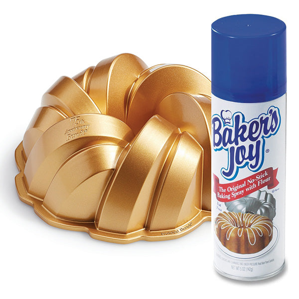 The Baker's Joy Non Stick Spray keeps your cakes from sticking to specialty baking pans and molds so you always get beautifully shaped cakes with perfect detail. The baking spray contains a unique blend of vegetable oil and flour that when sprayed on Bundt and other cake pans completely coats the surface for easy release every time and fast and convenient clean up. 5 oz capacity can.