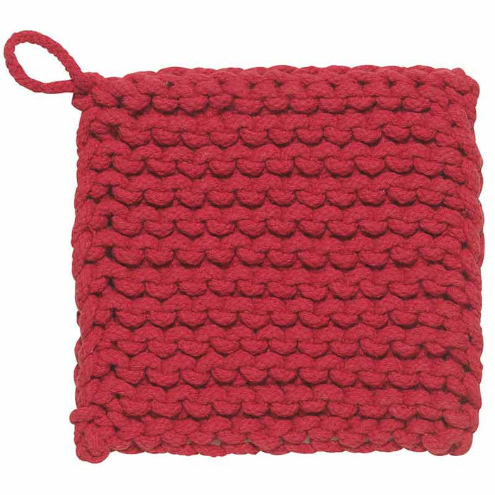 Danica Heirloom's Knit Potholder adds functional color and textural interest to a practical design that every kitchen needs. The thick, chunky woven potholder insulates brilliantly, while offering the flexibility and texture to give you a firm handle on hot cookware. It also works well as a trivet that will protect your valuable counter and table surfaces. The Knit Potholder is handmade in India from 100% cotton yarns and woven with a corner hanging loop. Hand wash only. Measures 8" x 8".