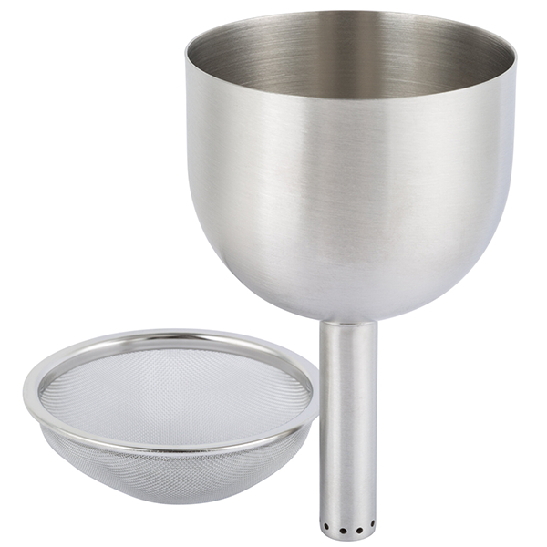 Decant your favorite wines through Oenophilia's Decanter Funnel Set to provide maximum air exposure and enjoy fully aerated flavor in minutes. This simple, but highly effective design includes durable stainless steel construction, a stainless steel sediment screen insert and a stainless steel stand with drip tray. A great gift for red wine drinkers.